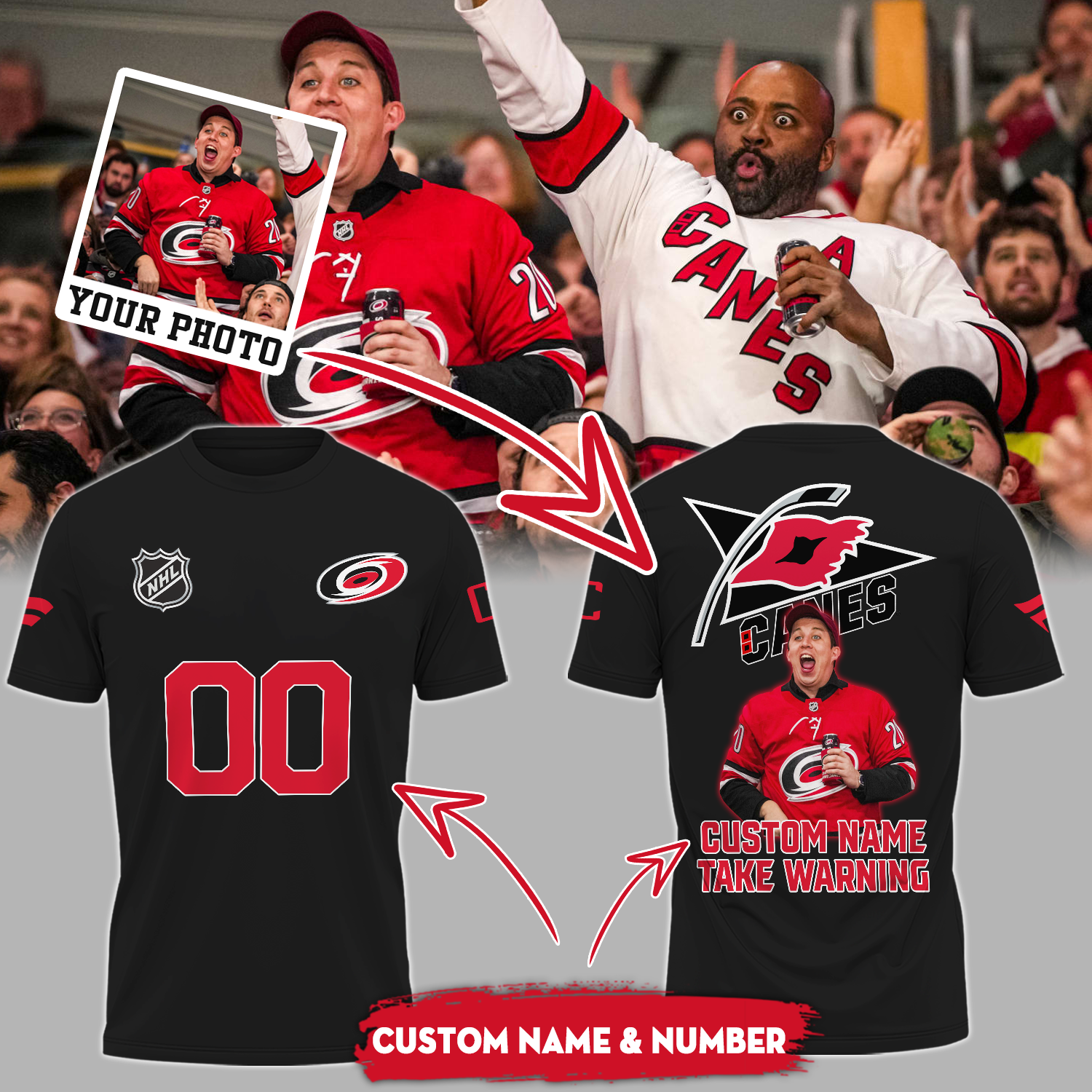 Carolina Hurricanes NHL T-Shirt Custom Photo And Name And Number TM