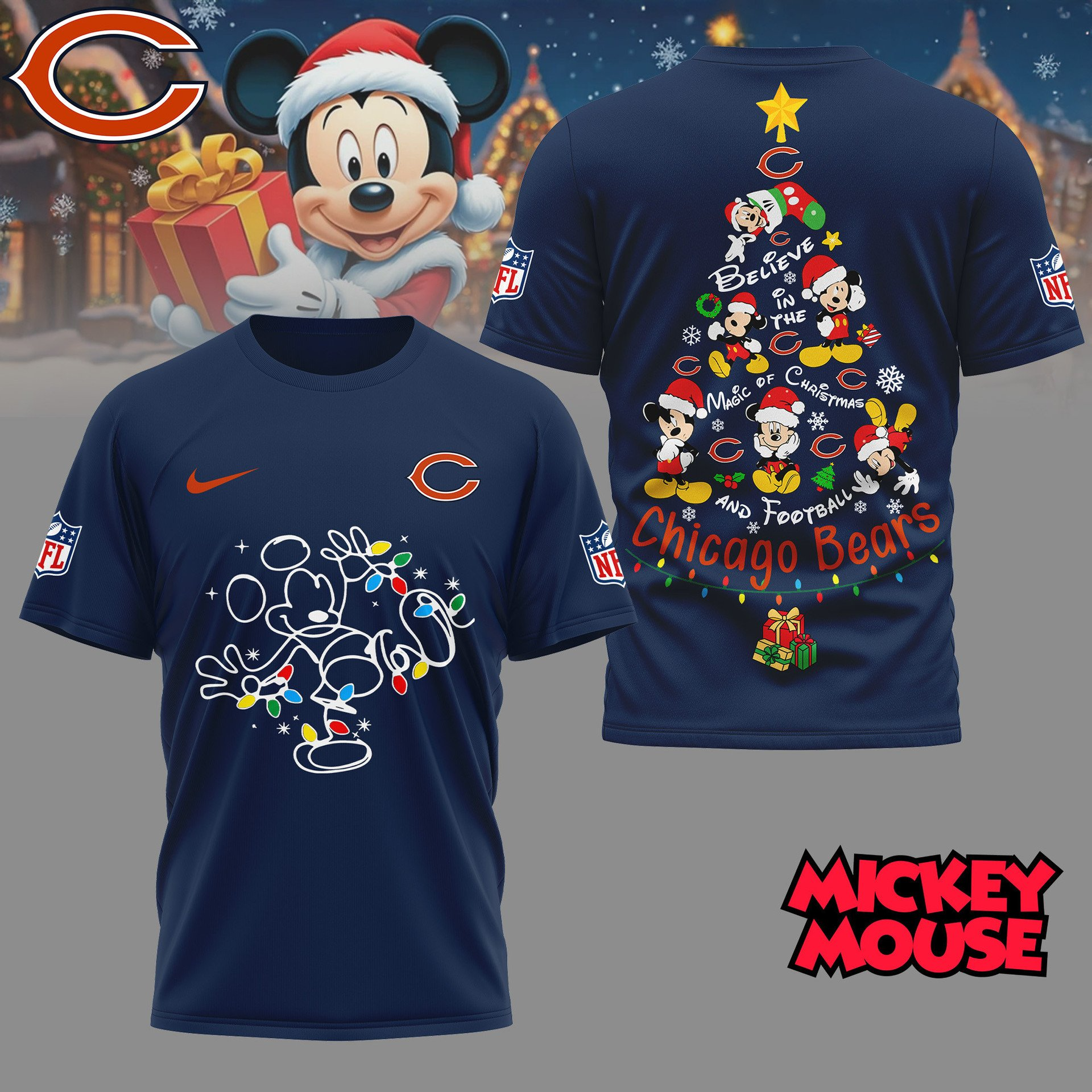CHI Premium NFL Mickey Mouse Christmas 3D Shirt DDT CTND