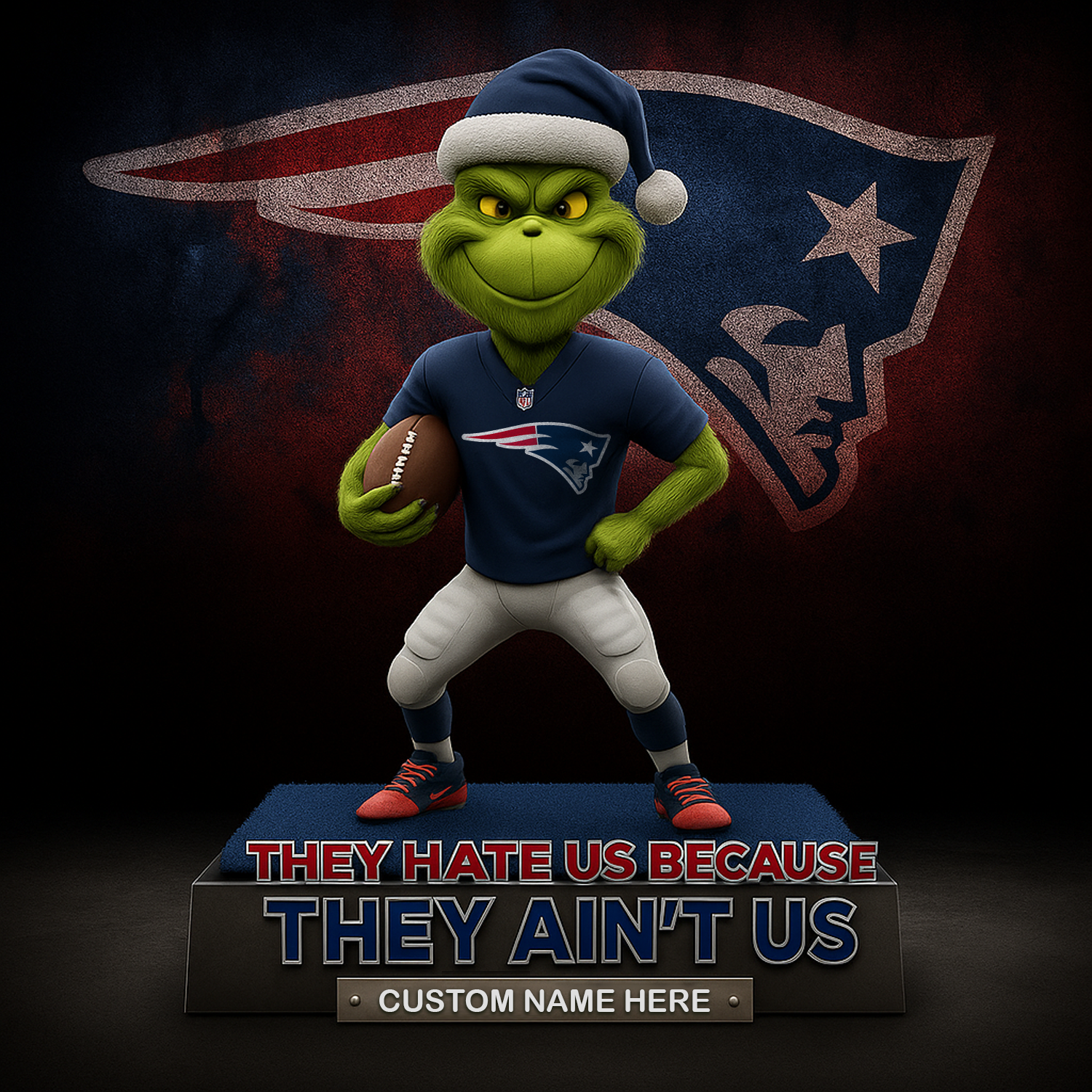 Fly high and stay festive with the Grinch Christmas Acrylic Art Block 🦅💚🎅! Featuring the mischievous Grinch rocking a beanie and jacket, holding a green-and-silver football under glowing holiday lights — it’s the perfect fusion of Christmas fun and pride.