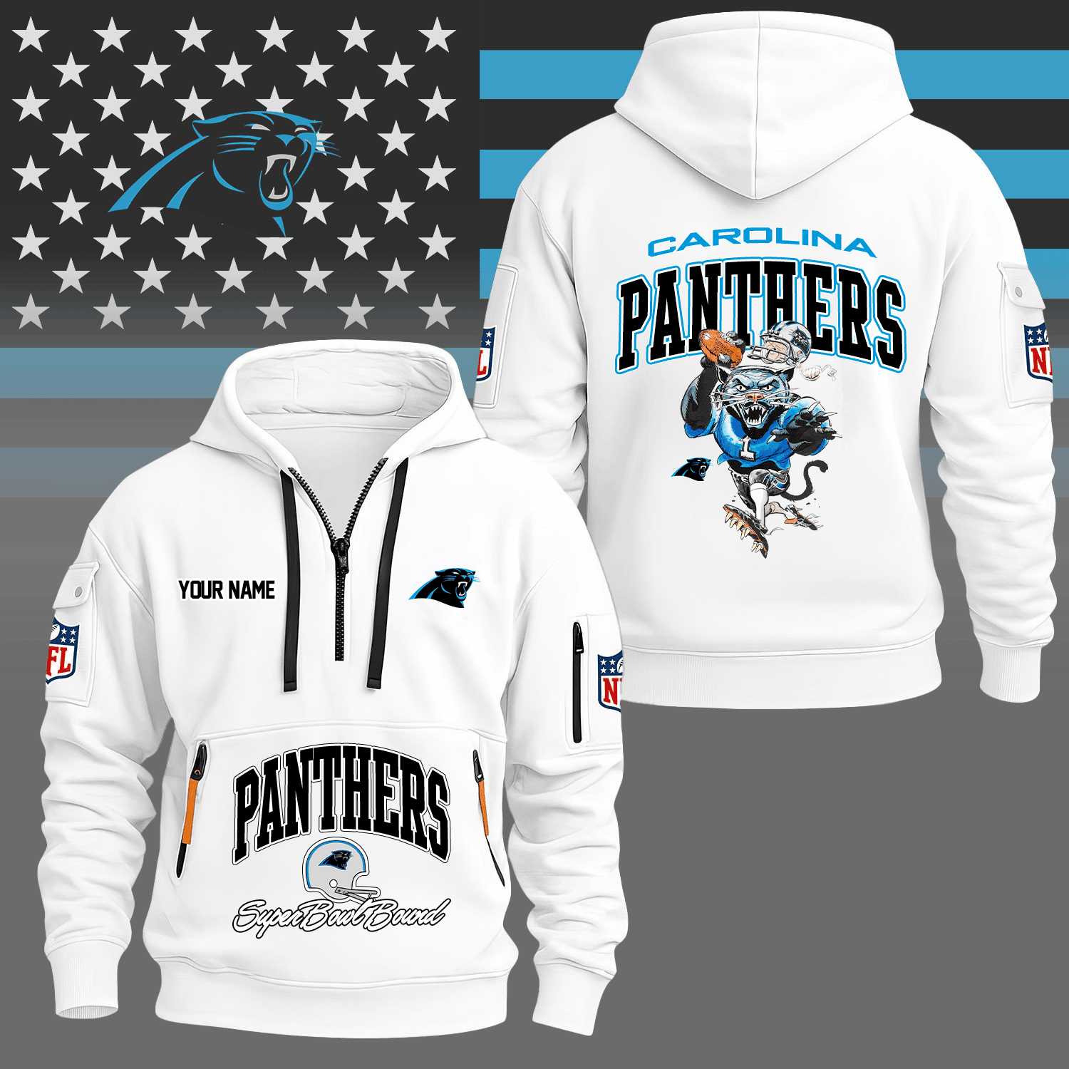 Premium NFL CAR Super Bowl Hoodie Half Zipper V1 NMD TTV