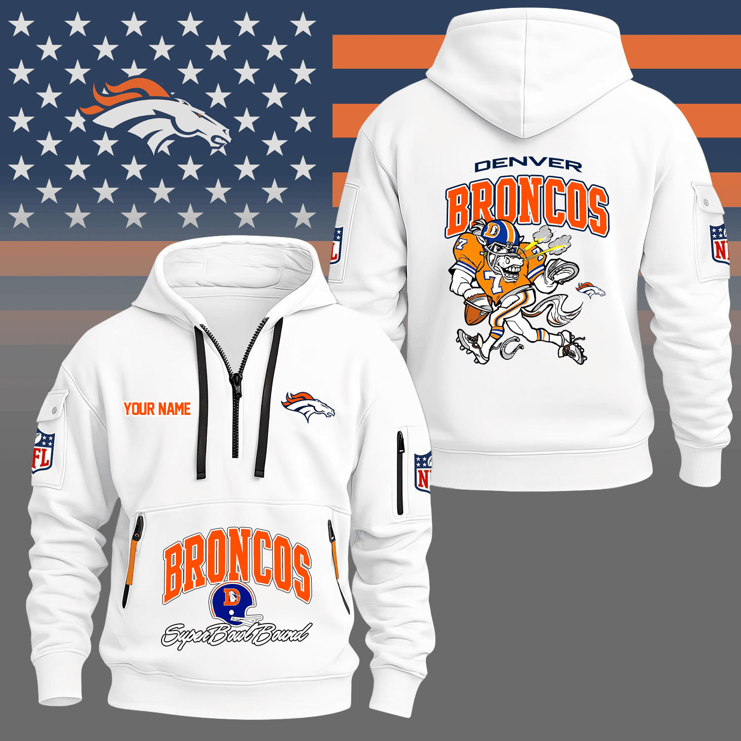 Premium NFL DEN Super Bowl Hoodie Half Zipper V1 NMD TTV