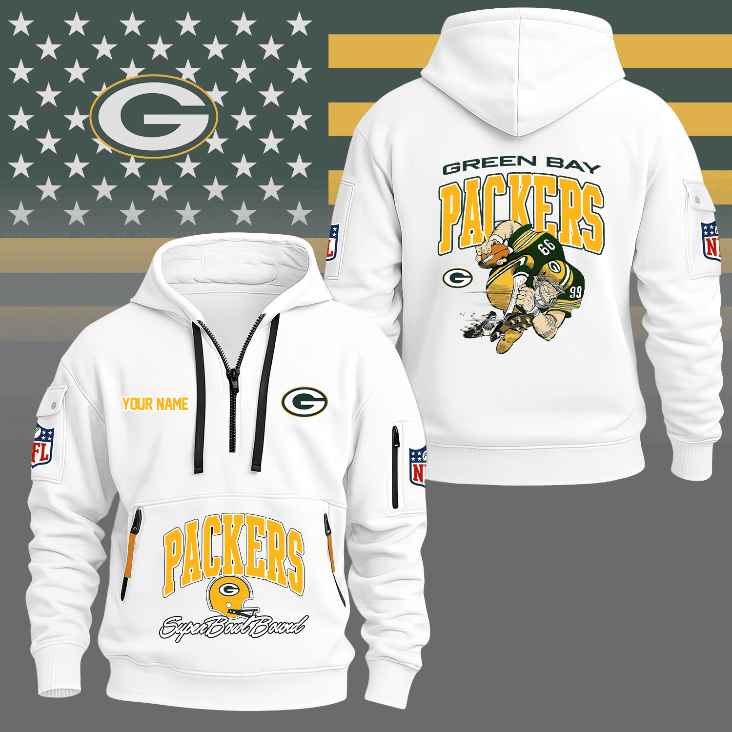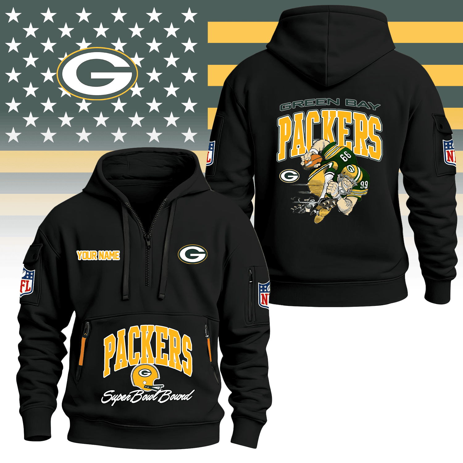 Premium NFL GB Super Bowl Hoodie Half Zipper V1 NMD TTV