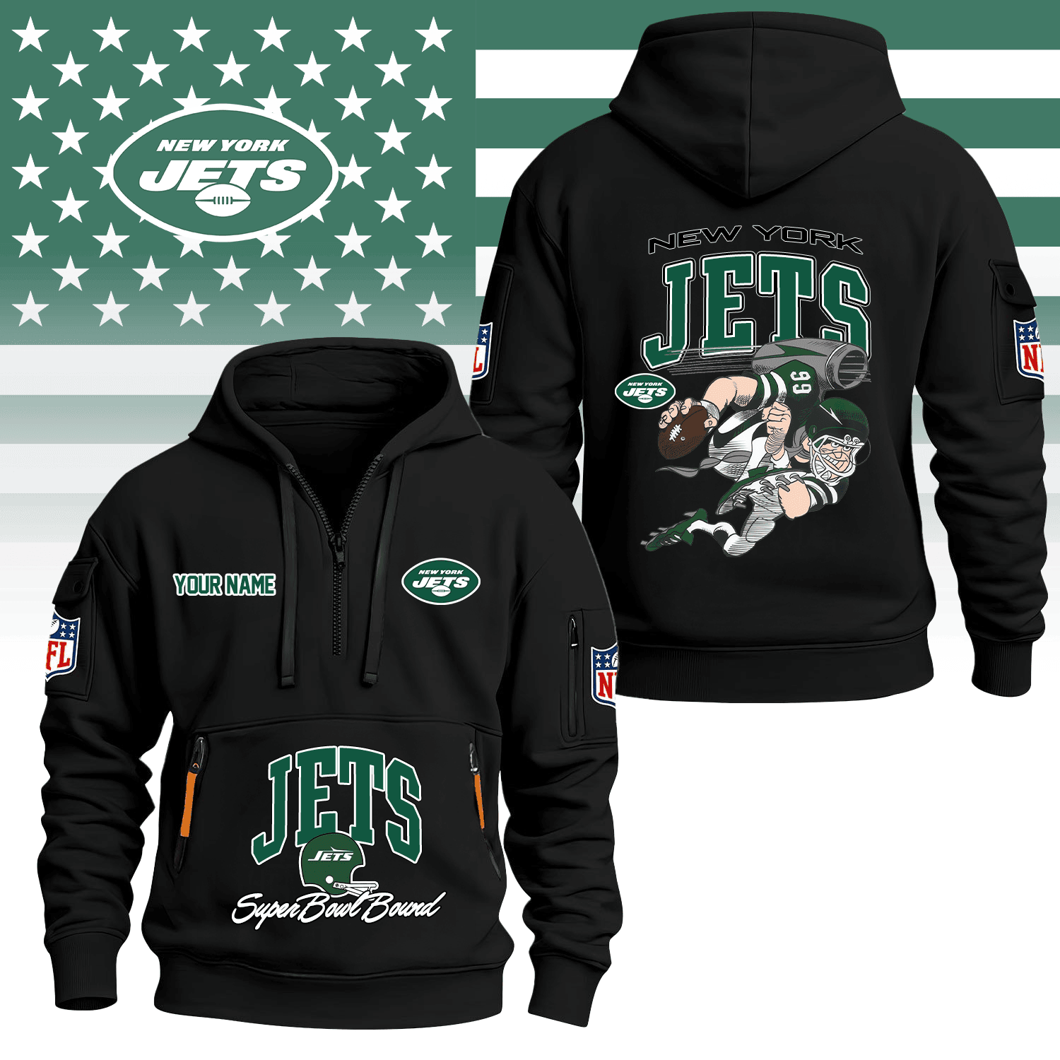 Premium NFL NYJ Super Bowl Hoodie Half Zipper V1 NMD TTV