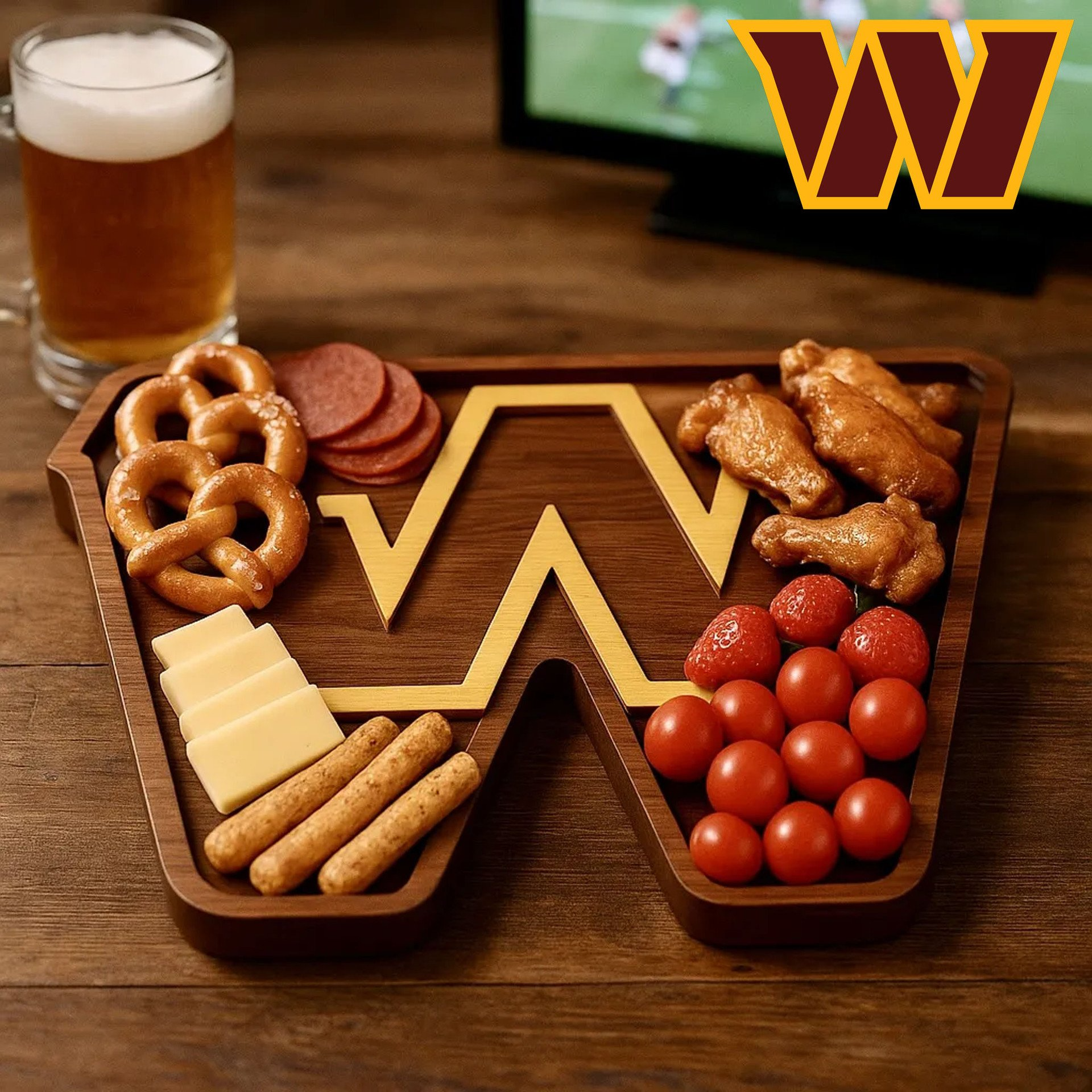 Bring stadium vibes straight to your dining table. This handcrafted wooden serving board isnŸ??t just for food Ÿ?? itŸ??s a true fanŸ??s statement piece. Perfect for game nights, family gatherings, or tailgate parties, it makes every snack feel like a winning touchdown.